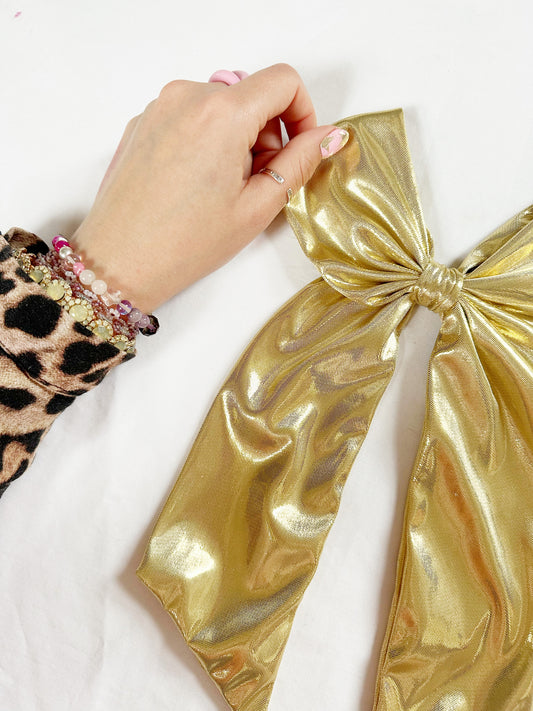 Power Hair Bow in gold lamé