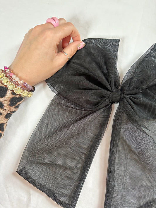 Oversized Power Hair Bow in sheer black