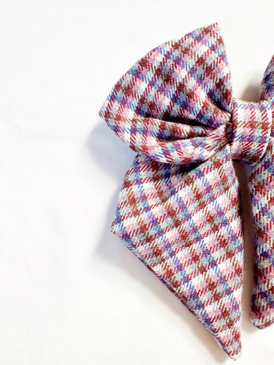 Hair Bow in brown pink and blue tartan