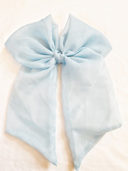 Oversized Power Hair Bow in sheer baby blue