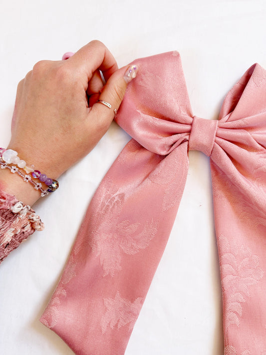 POWER Hair Bow in pink damask
