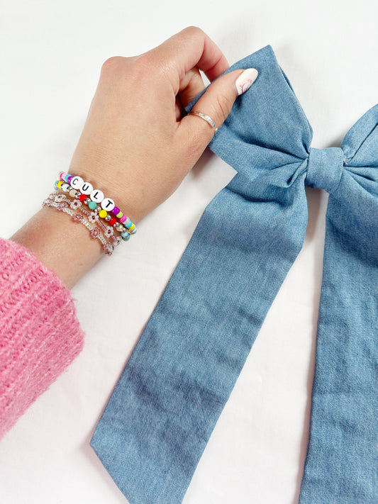 POWER Hair Bow in denim blue