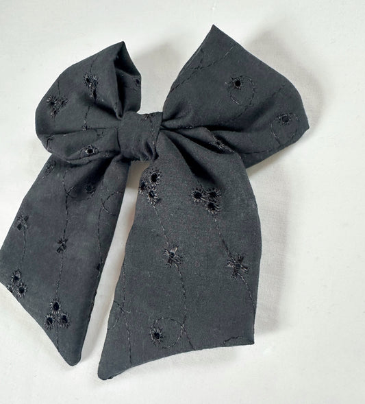 Hair Bow in black broderie