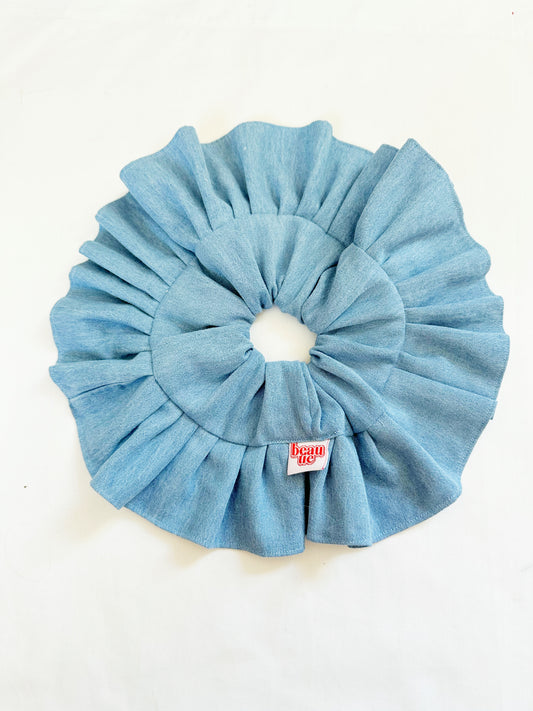 Oversized frilly scrunchie in blue denim