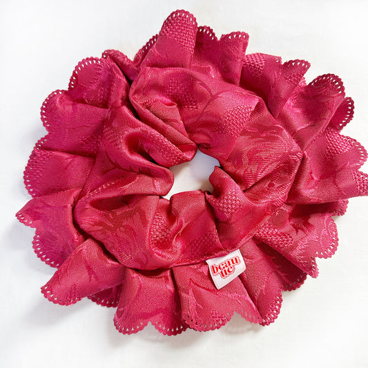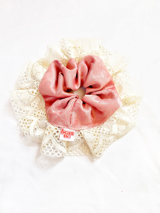 Oversized scrunchie in pink damask lace
