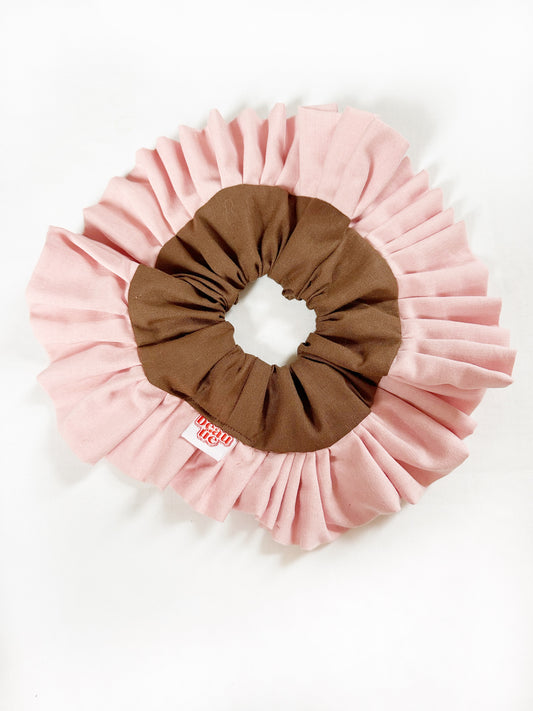 Oversized frilly scrunchie in pink & brown