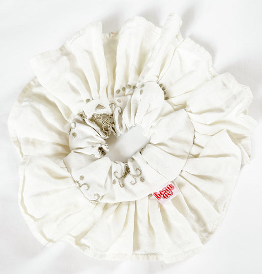 Oversized frilly scrunchie in vintage white linen