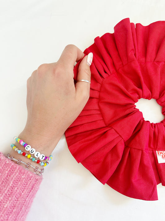 Oversized frilly scrunchie in tomato red cotton