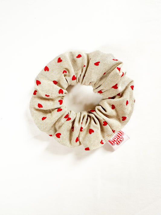 OG scrunchie in small heart print linen