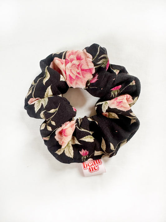 OG scrunchie in black and pink rose
