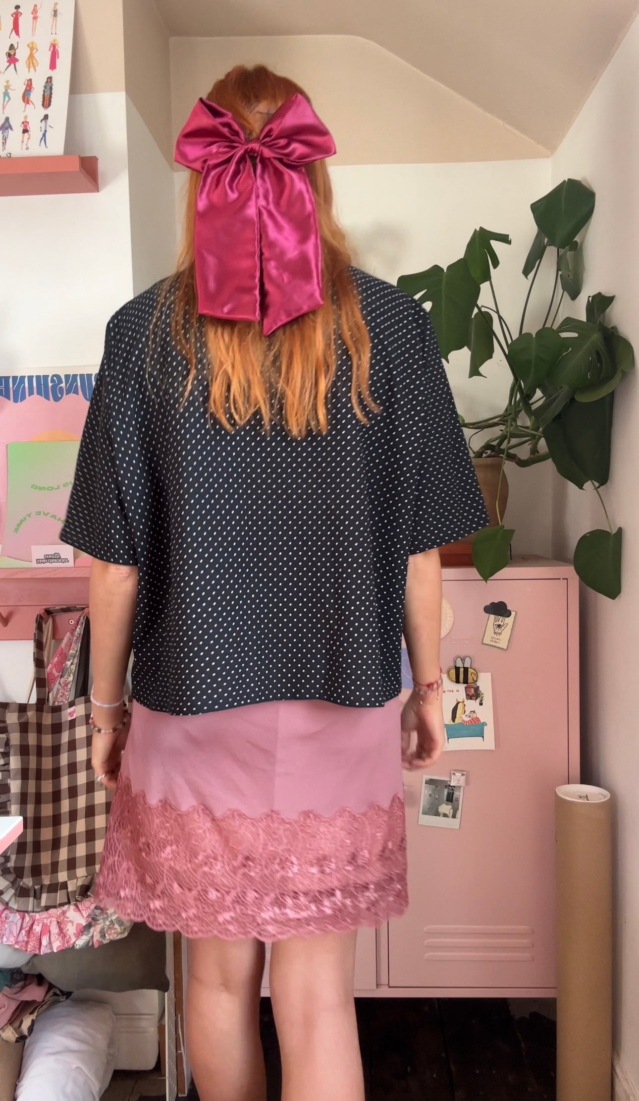 The POWER hair bow. She’s here to make a statement. A gorgeous hair bow attached to a barrette clip. This hair bow is the perfect party piece, handmade using a beautiful burgundy silk mix fabric.