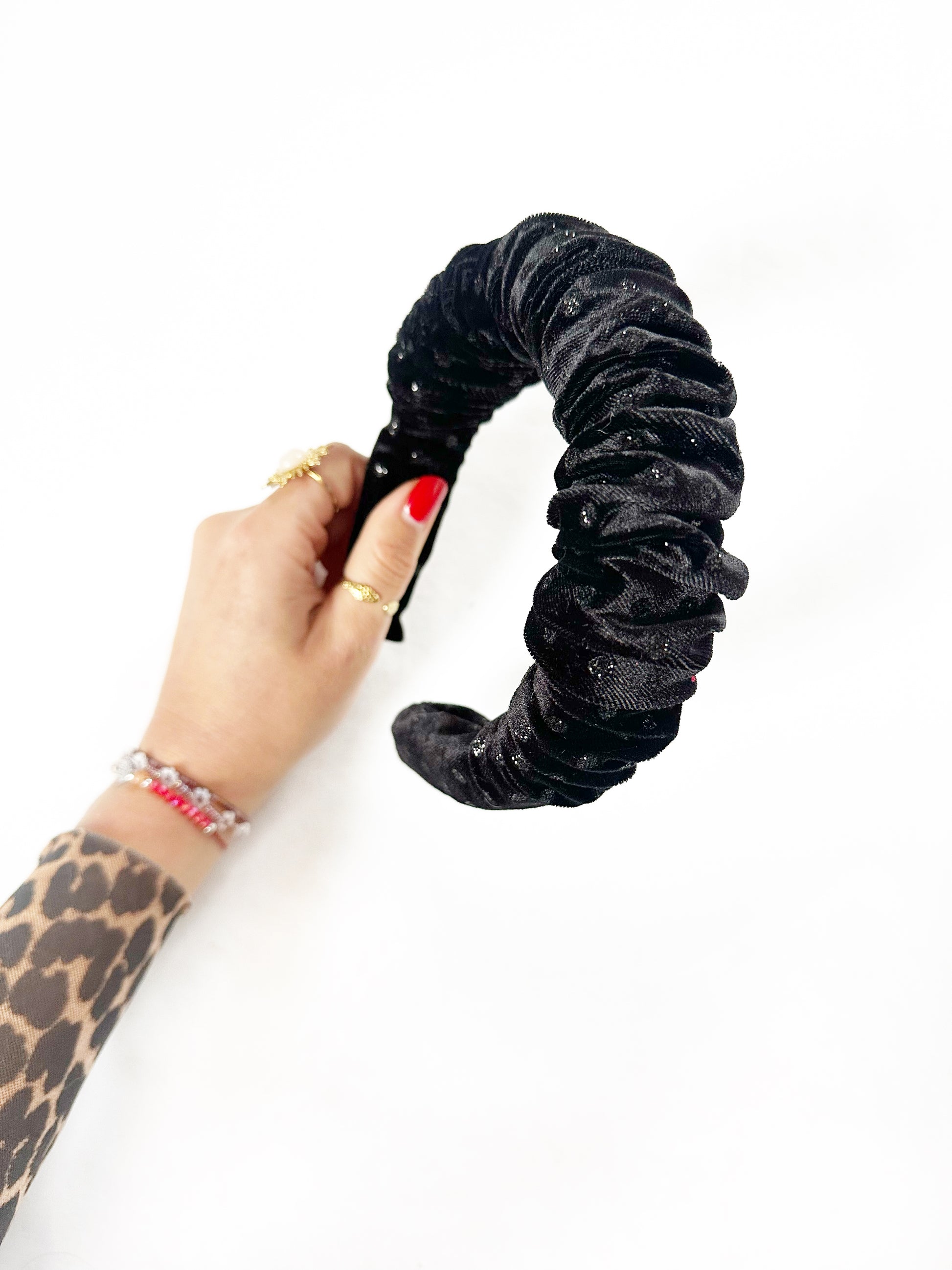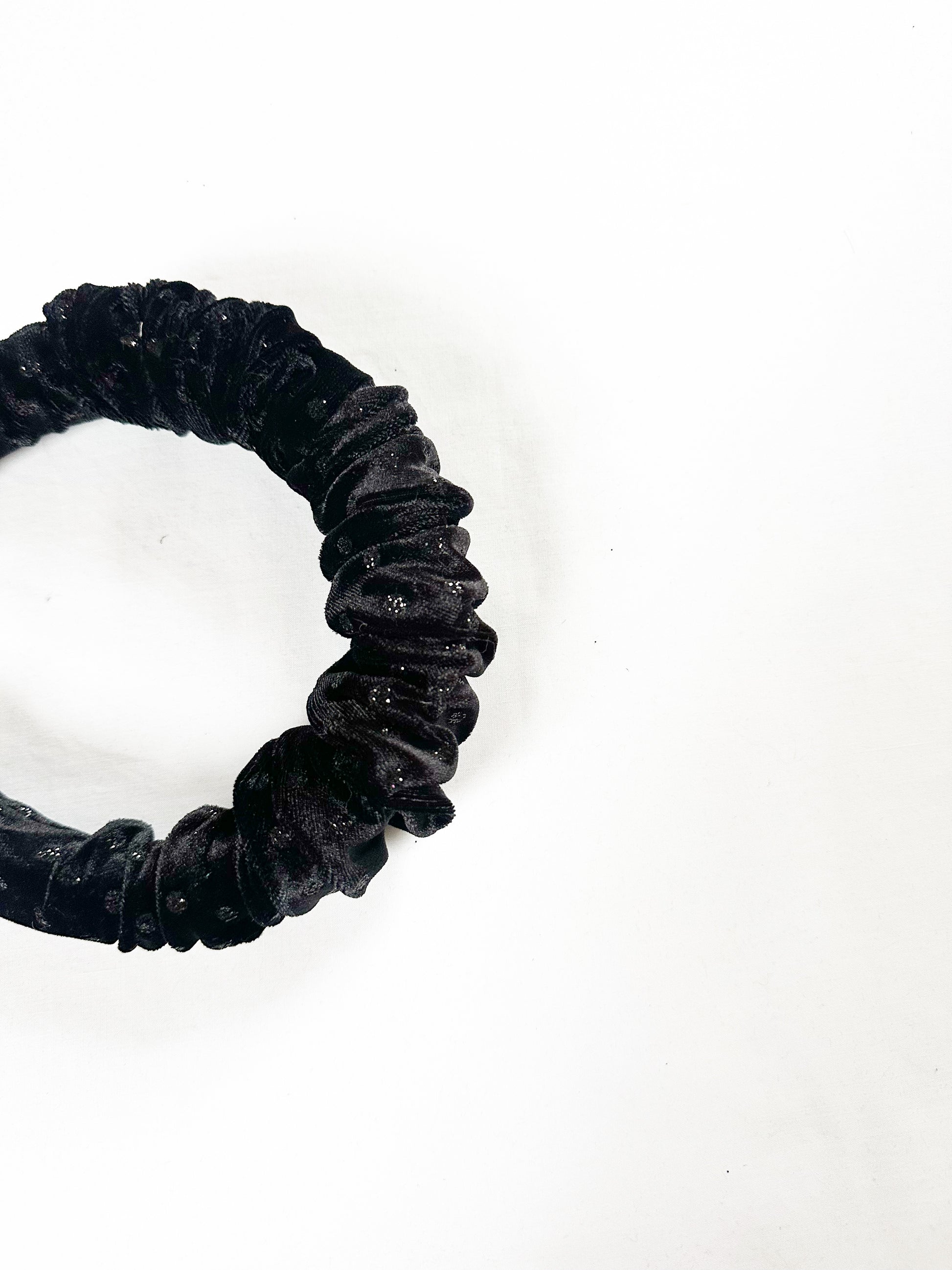 Ruffle Headband in black velvet sparkle